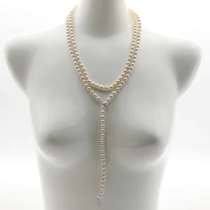 真珠 パール ロング ネックレス あこや真珠 ロング パール ネックレス 7mm-7.5mm 120cm ホワイトカラー シルバー アコヤ本真珠 カジュアル