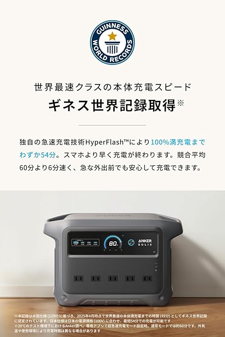 - 本体充電をお急ぎでない場合は、通常モード (入力1200W) を利用することで、バッテリー寿命をより長持ちさせることができます。超急速充電モードは専用アプリで設定いただけます。