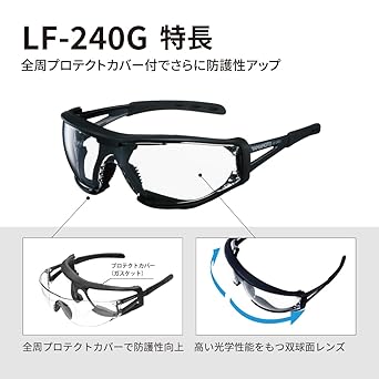 [山本光学] 保護めがね LF-240G プロテクトカバー付き キズに強い くもり止め 日本製 JIS 紫外線カット