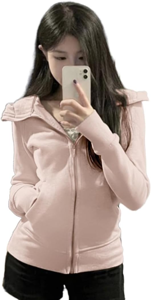 [murfeko] ジップパーカー レディース 無地 長袖 スウェット ゆったり 大きいサイズ ポケット付き パーカー おしゃれ 可愛い 学生 高校生 大人 運動 通学 春 秋